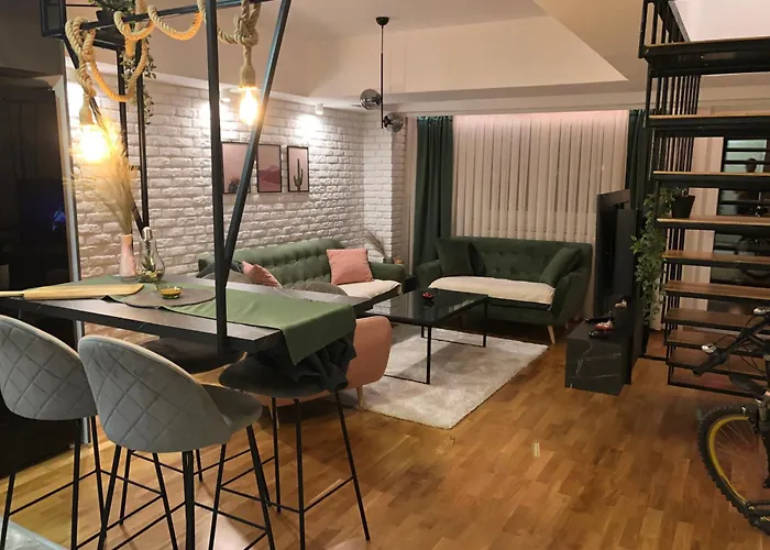 Per goderti la tua vacanza a Skopje, alloggia in City View Duplex - Stylish 2Br Apartment With Parking Skopje, di 75 m^2, che si trova a 10 minuti in macchina dai Bagni Daut Pascià e a 2 km dallo zoo di Skopje. La strutura è dotata di una terrazza con una vista sulle montagne.